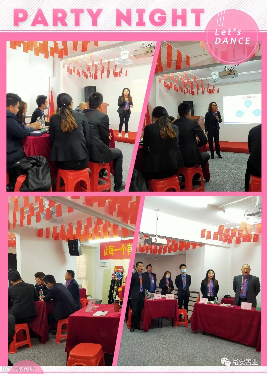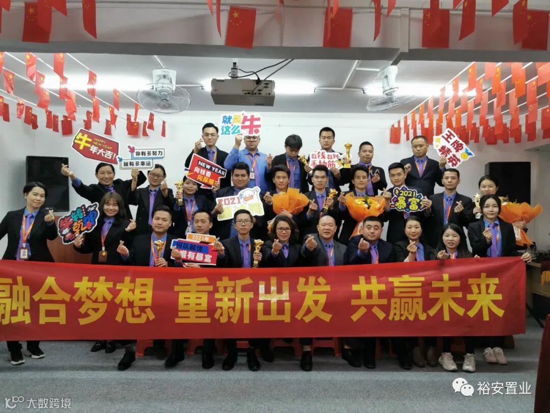 2021年1月25日,裕安地产全体同仁欢聚一堂,举办主题为“融合梦想 重新出发 共赢未来”的迎新年会暨员工表彰大会,回顾总结公司2020年的工作,表彰2020年在公司各项任务推进过程中涌现出来的先进团队和个人,安排部署2021年全年工作,进一步推动全员上下更新观念,锐意进取,开拓创新,全力推进公司各项工作再上新台阶。