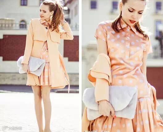 四:重点配色法:整体色相统一,以撞色或其他颜色作点缀,以此来突出重点的配色法。这种配色法给单调的衣着增添了活力与亮点,如果巧妙应用在聚会等场合,既得体又不失时尚感。