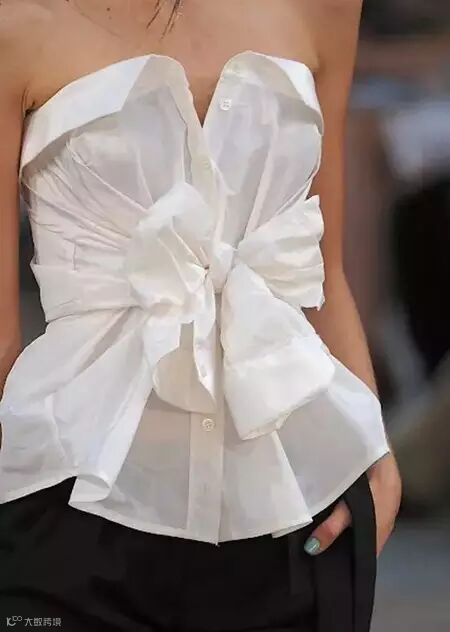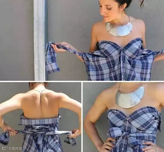 袖子展开做宽吊带,领子做那一节抹胸,完全没浪费。爸爸你的衬衫为我而生。