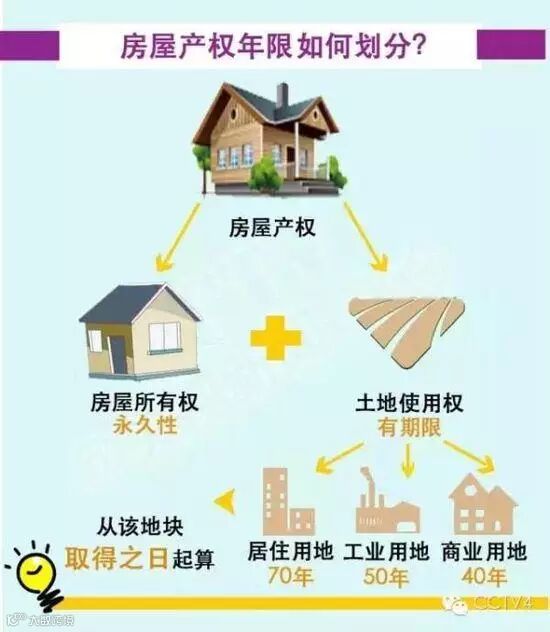 也就是说,房子的所有权是永久的,只要房子不塌,这房子就一直是产权人的。但我们是社会主义国家,土地是国家的。根据项目的立项不同,租用国家土地的周期也不同,住宅70年,工业/科教文卫体/综合类50年,商业/旅游/娱乐40年。