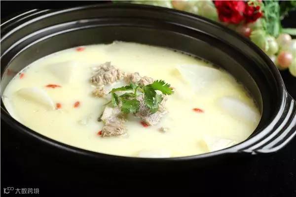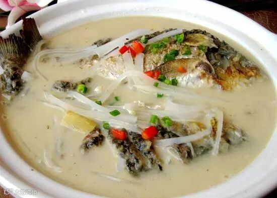 白萝卜和鲫鱼煮汤有温中下气、健脾利湿的功效。这道汤还妙在“二白”食材上,白萝卜浸在奶白色的鱼汤里,让人看着就很有食欲。