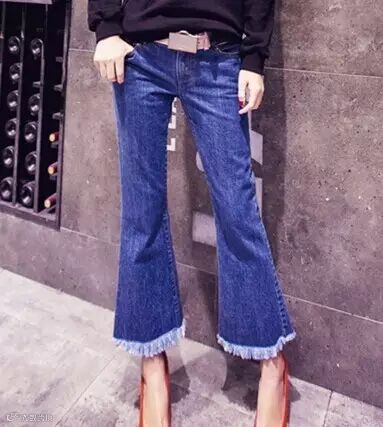 微喇叭的牛仔裤更加的时尚,小腿的缺点完全看不到~