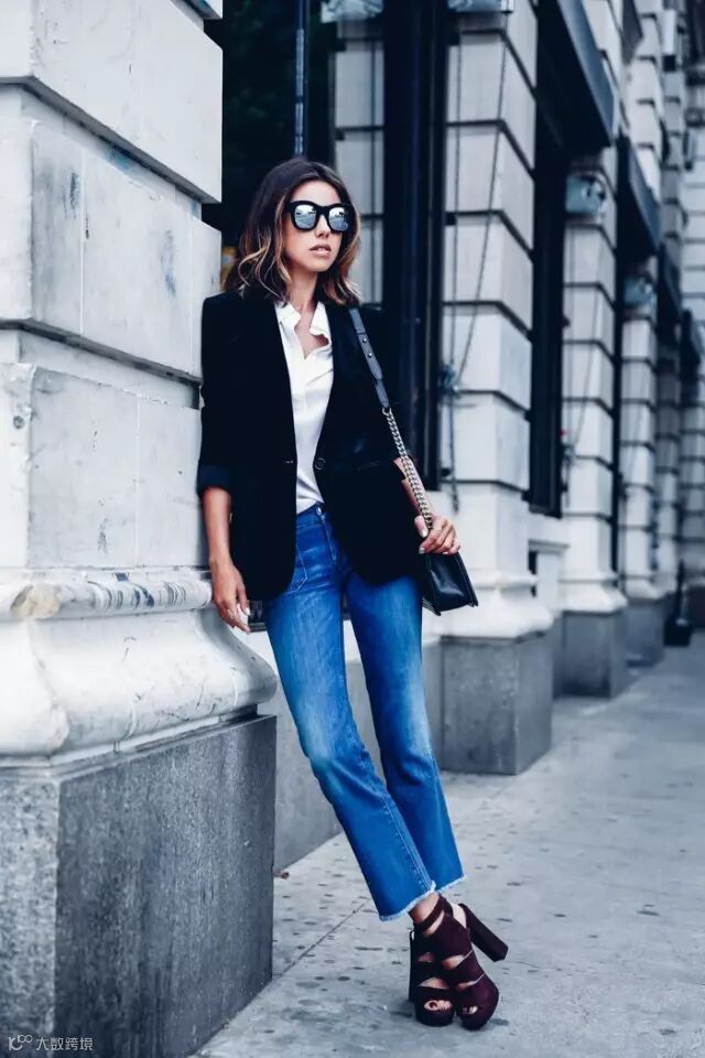 这种毛边的牛仔裤,也是今年流行的款,搭配上妥妥的显腿直~