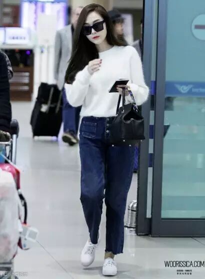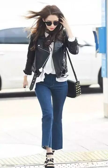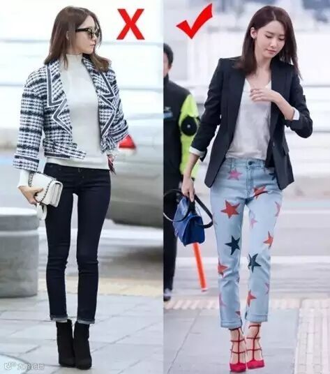 允儿就属于O形腿,不过会穿牛仔裤也能够完美修饰~