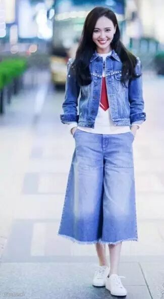 这类腿型很常见,杨幂也是这样的腿型,只需要一条普通的直筒牛仔裤就可以了~