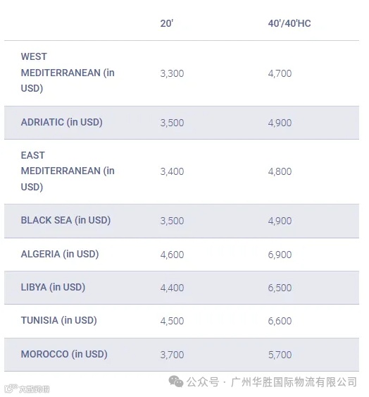 目的地范围:至所有地中海基本港口(上述区域)