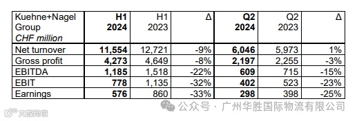 近日,Kuehne+Nagel德迅集团公布了其2024年第二季度及上半年财报业绩!
