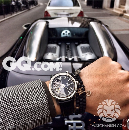 照片中的这位哥们明确在配图文字上说明:早上起床,哥特别兴奋可以开着布加迪戴着Louis Moinet Mecanograph腕表去开会。这样直白的炫耀着,多好。