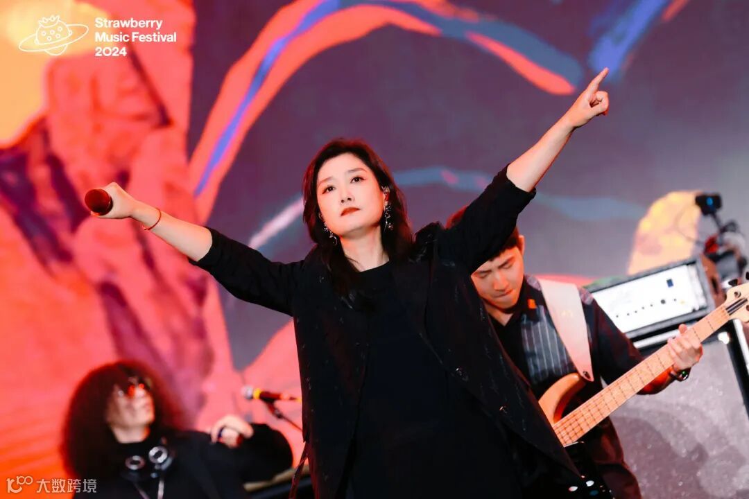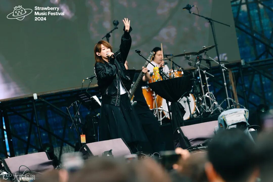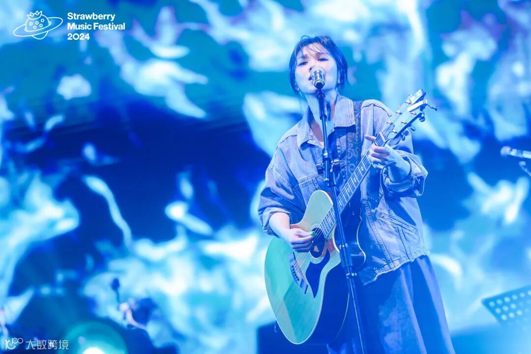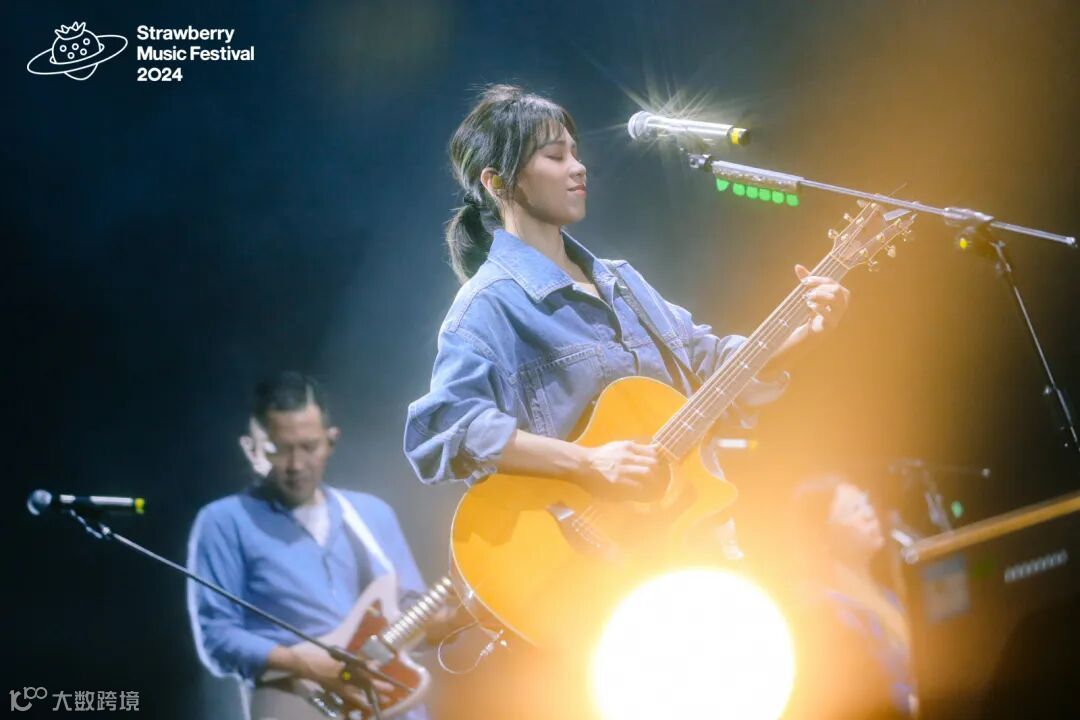 一身牛仔套装搭配一支木吉他,携新旧金曲,时隔九年回归草莓音乐节的蔡健雅压轴爱舞台!她将今晚的演出曲目重新编曲和诠释,呈现出一股异彩纷呈又气势豁达的,不失独立气质的流行音乐神色,现场气氛高潮迭起又流畅丝滑。间隙回应台下乐迷的期待,蔡健雅透露下半年将继续演唱会之旅,期待与大家见面。