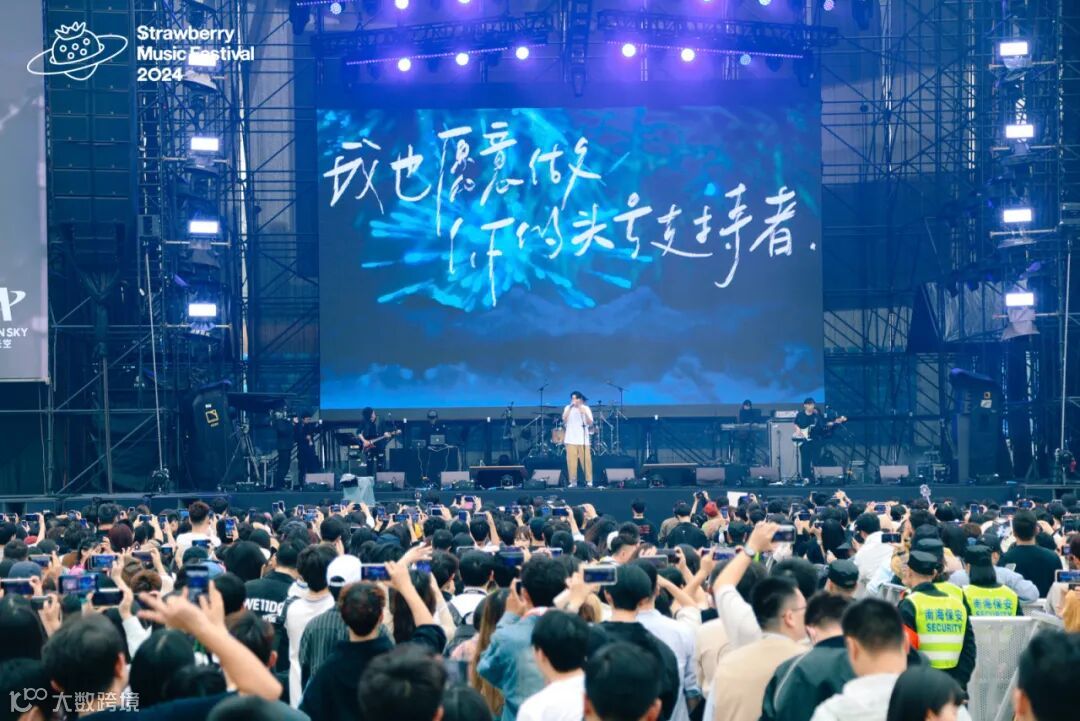 颜人中的第一次草莓音乐节演出,在佛山开启!耐心又温柔的他在歌曲间隙与乐迷分享自己久未登台的紧张,也细心地观察到台下乐迷的情绪,安慰到“别哭了,希望下一首歌能治愈大家,得尝所愿”,用音乐连接起彼此的情绪。颜人中更是将《爱到你说》完整版首唱献给了佛山草莓,真诚的歌声值得我们收藏回味。