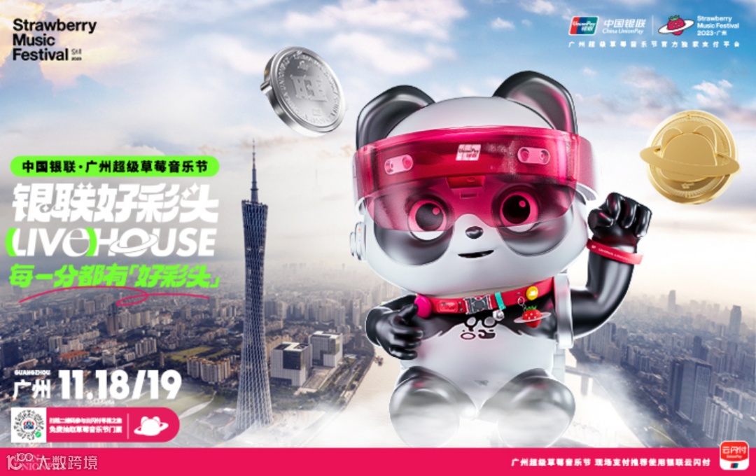 11/18-19日,中国银联·2023广州超级草莓音乐节开唱!逛中国银联「好彩头LIVEHOUSE」,解锁湾区支付惊喜,每一分都有「好彩头」!!云闪付支付,随机立减,最高免单!用户在草莓音乐节活动现场商户,用云闪付APP支付,可享随机立减1元至62元(单笔满2元),最高享受免单优惠。“U惠广东”吃喝玩乐享好券;港澳支付超优汇率、精选商户助力“汇”省旅途;广州银行草莓现场支付券包1元购(价值50元);银行APP云闪付版超多优惠等你来。还有限量数藏、周边礼品等好彩头等你领取。好事总会兑现,LIVE没有时限,中国银联帮你赢得生活好彩头。扫描二维码参与云闪付寻福之旅解锁更多好彩头。