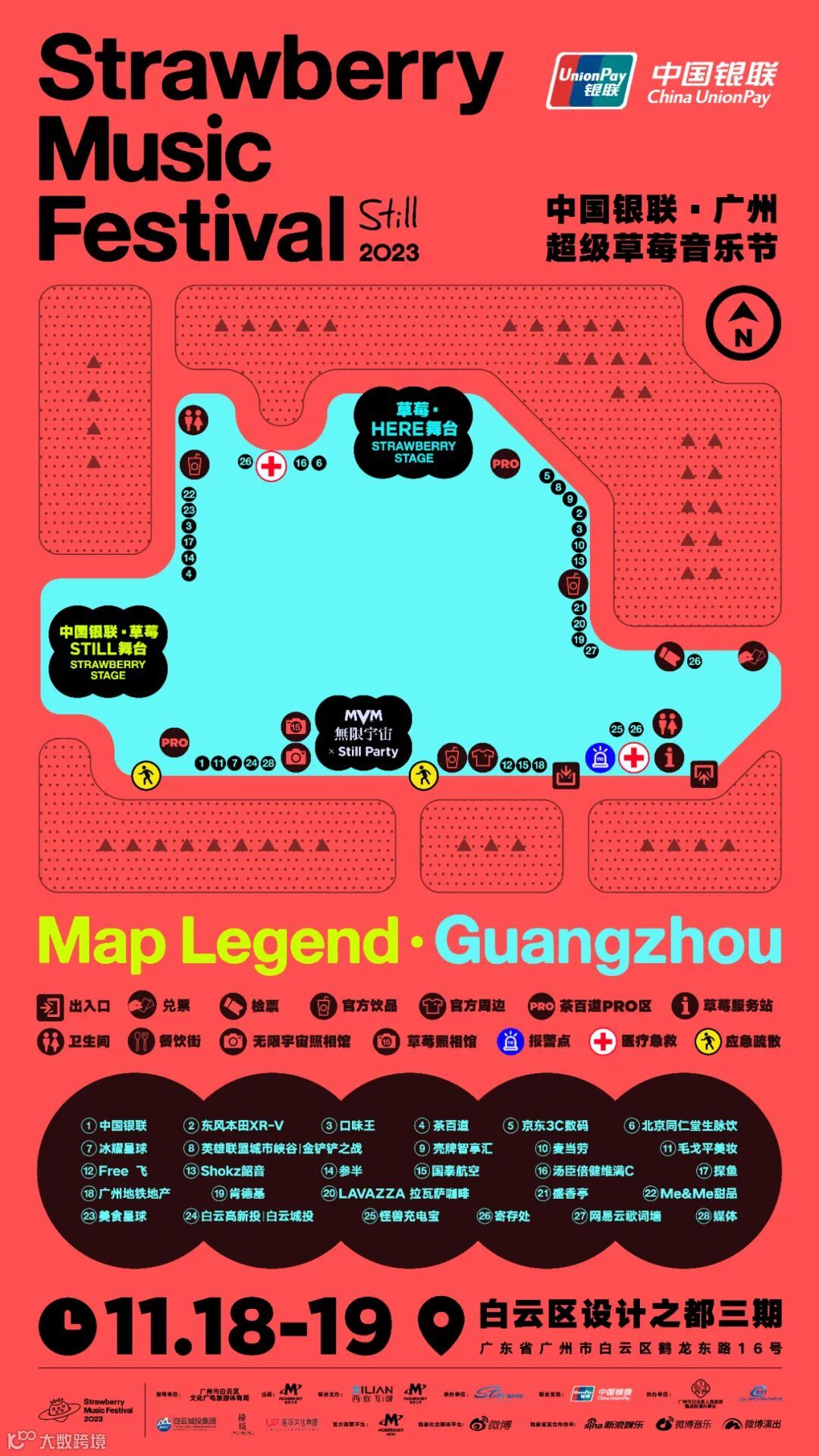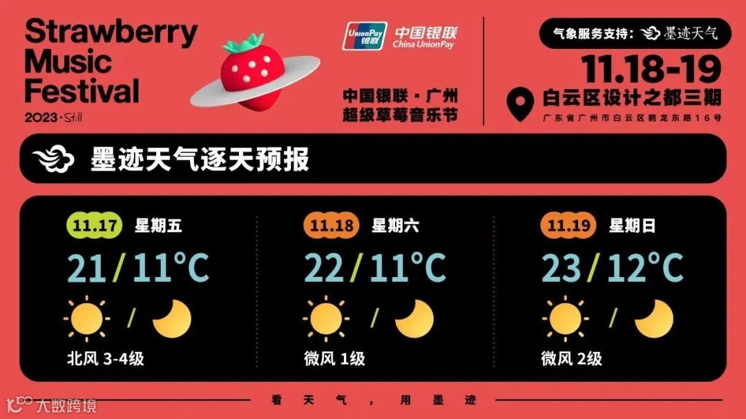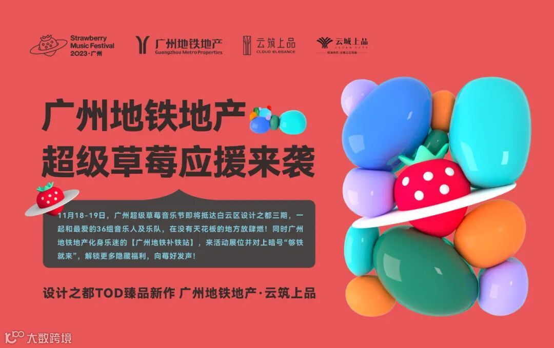 11月18-19日,广州超级草莓音乐节即将抵达白云区设计之都三期,一起和最爱的36组音乐人及乐队,在没有天花板的地方放肆燃!同时广州地铁地产化身乐迷的[广州地铁补铁站] ,来活动展位并对上暗号“够铁就来”,解锁更多隐藏福利,向莓好发声!