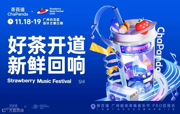 广州超级草莓音乐节,年末压轴登场!「好茶开道,新鲜回响」以好茶为底打造多元风味,让世界爱上一杯中国茶。依旧是好茶相伴,音浪迭起茶香不断。躁动的live现场,有耳机传达不出的特殊情绪~来茶百道展位锁定绝佳打卡点位!互动、周边,更有限定饮品为你独家放送!快来现场解锁,不一样的潮范儿茶百道!
