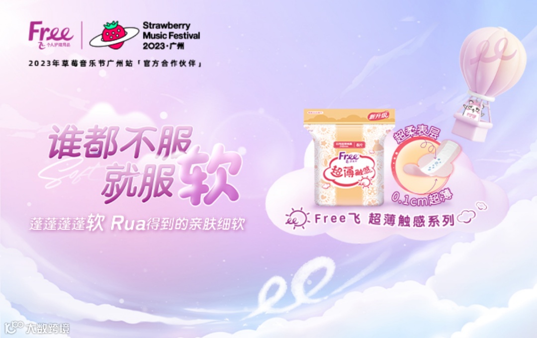尽享蓬软,肆放莓边!深受少女喜爱的个人护理用品时尚潮牌Free飞,这一次,玩到广州超级草莓音乐节现场!Free飞棉柔超薄卫生巾,用rua得到的亲肤细软,为女孩们带来“蓬蓬蓬蓬软”的全新体验!
