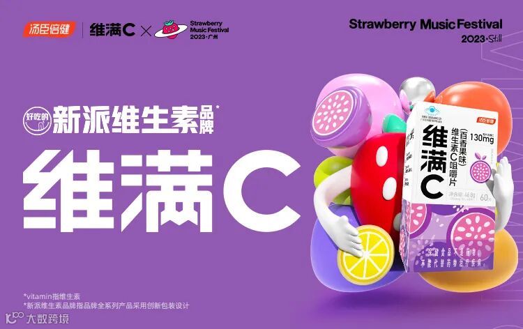汤臣倍健旗下好吃的新派维生素品牌维满C,登陆广州超级草莓音乐节。好吃的VC,给音乐加点味道,泡腾的VC,让音乐现场更沸腾。