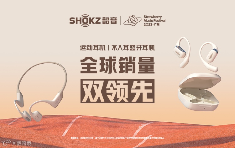 Shokz韶音,成立于2011年,是一个专注于不入耳声学科技创新的消费电子品牌。作为专业运动耳机品类的佼佼者,韶音通过对技术与产品的深耕、对运动爱好者的深度洞察,打造了开放聆听的全新品类概念。