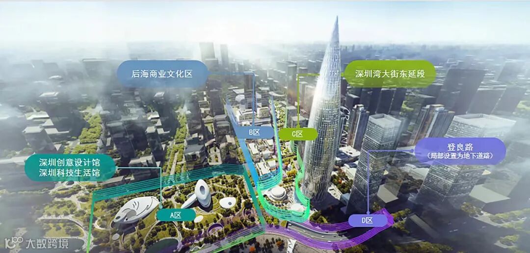 深圳湾广场由A区——深圳湾文化广场、B区——后海商业文化区、C区——深圳湾大街东延段以及D区的登良路组合而成。