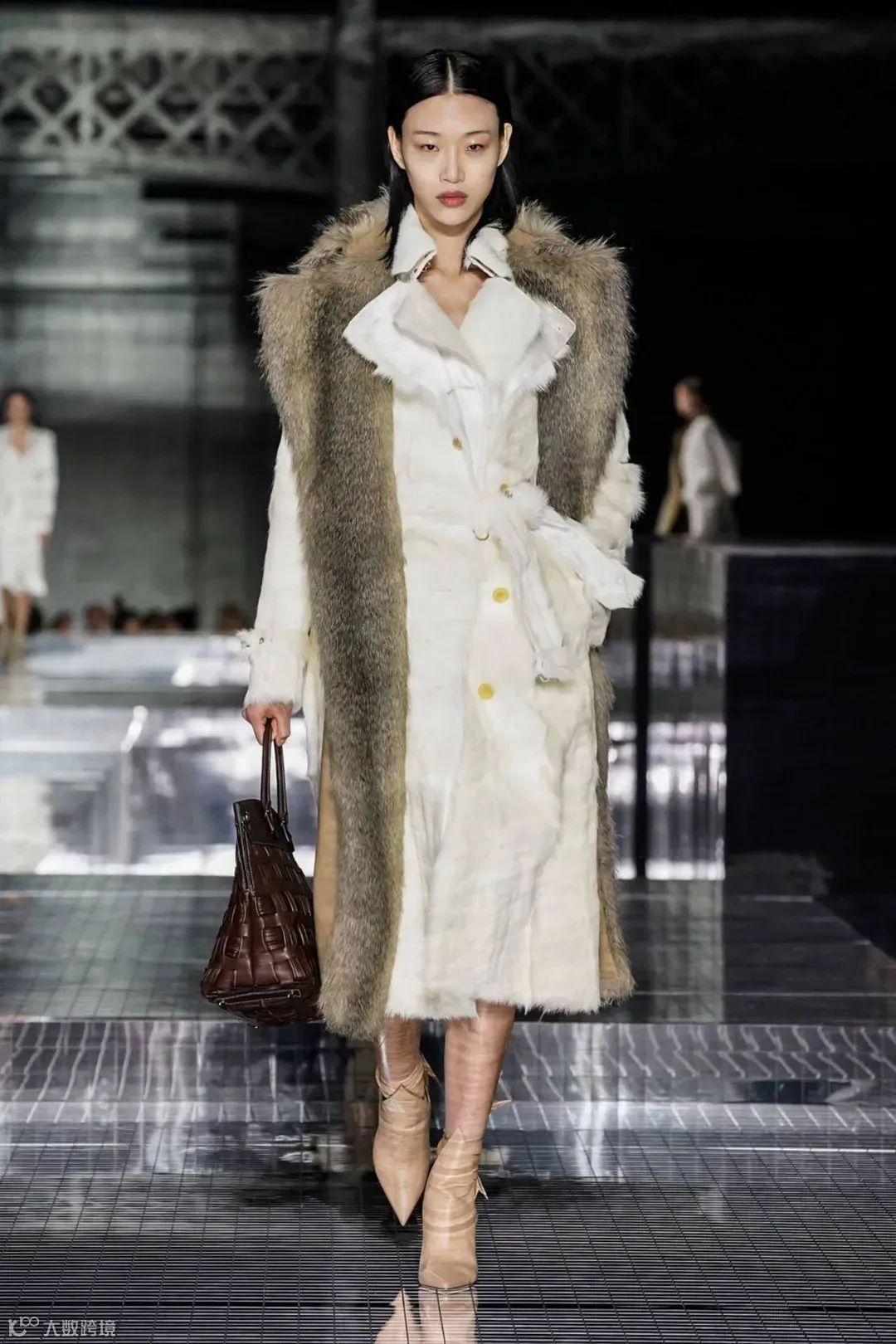 Burberry在2020秋冬秀场,利用兔毛在外套上做拉绒的拼接,提升触感,给穿着者带来裹身舒适,使其更受欢迎。