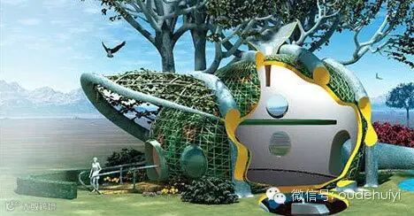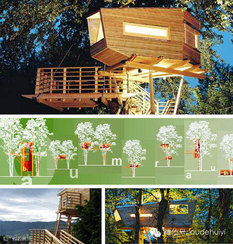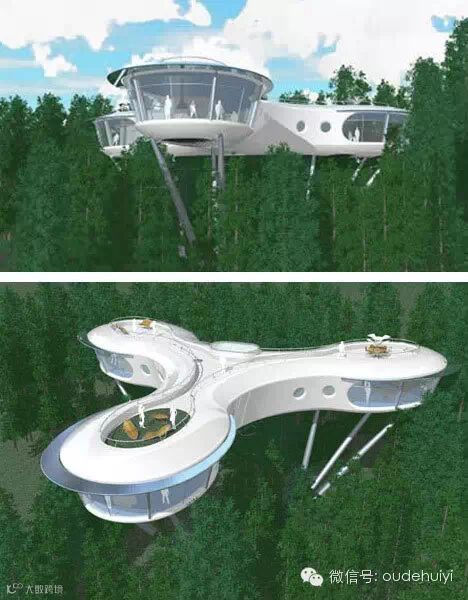 这是人们为了保护树,把自己束缚在树上,一些人选择住在上面。为了保护存活了400多年的古树,一些积极分子住在了目前世界上最高的“树屋”,一种简易的悬挂平台。一位聪明的设计者从理论上设计了上图所示的一种树屋。现在只有13%的古树了,这种新的设计将会把树木连在一起,更有利于保护自然环境。
