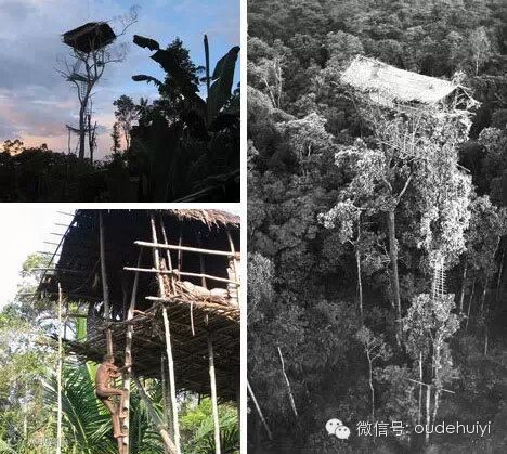 当然,并不是所有的树屋都是有前卫设计的和具有可持续发展能力的。就像上面图片的那个树上居民,他就居住在更加传统的树屋上。在印度尼西亚巴布亚省的布拉萨河流域丛林中的当地人,建造这种的树屋来逃避虫害猛兽。他们的树屋现在都已经超过100多英尺了。