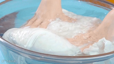2、混合均匀后,将羊毛衣物浸泡在水中至少25分钟。如果衣物缩水严重,浸泡时可以轻轻拉扯衣物。