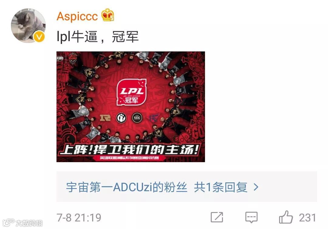 夺冠消息一出,粉丝们纷纷发来贺电