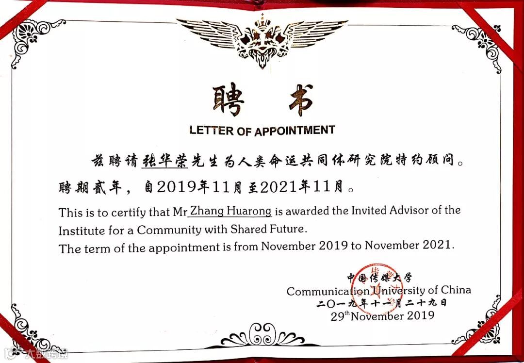 张华荣董事长受聘为中国传媒大学人类命运共同体研究院特约顾问