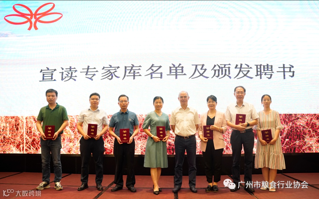 赖会长宣布聘任广州市粮食集团有限责任公司党委办公室主任郭红红为新一届理事会秘书长,同时宣读了第五届理事会专家库特聘专家名单,并为到场的专家颁发了聘书。