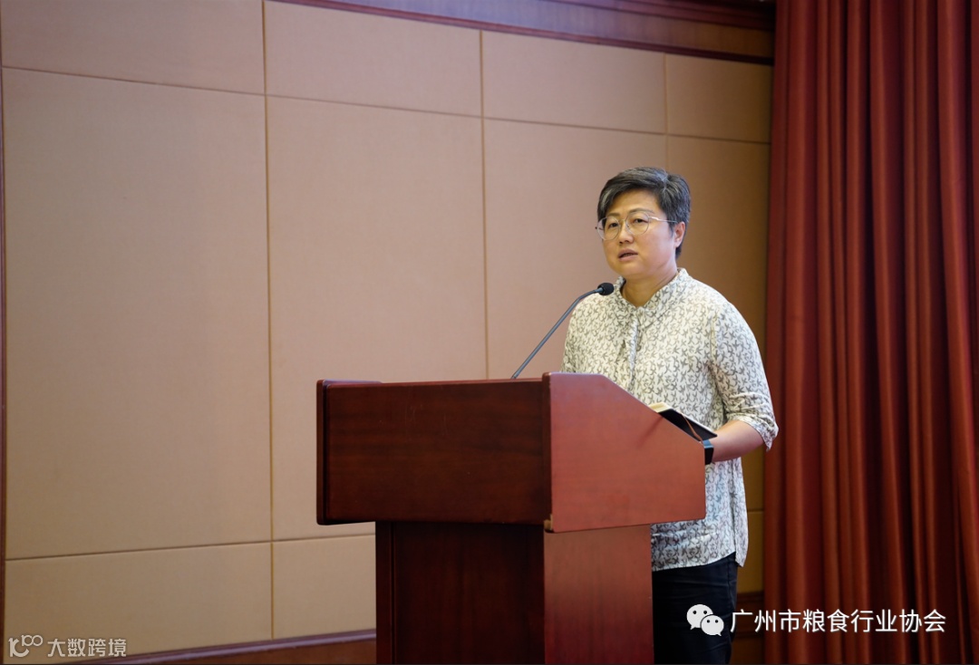 广州市发展改革委粮食和物资储备处二级调研员曾梅同志上台致辞,并对协会新当选的领导班子表示祝贺。