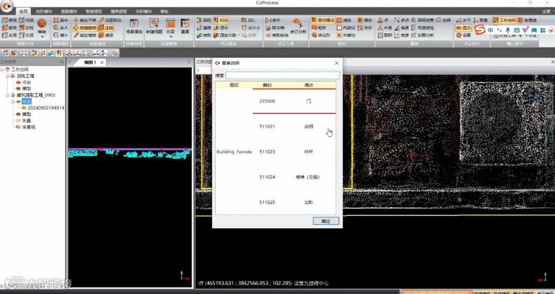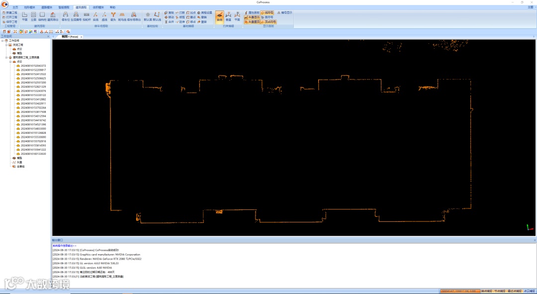 采用华测自研CoProcess软件中的平立剖自动提取功能,优先完成对建筑物的外部轮廓提取。