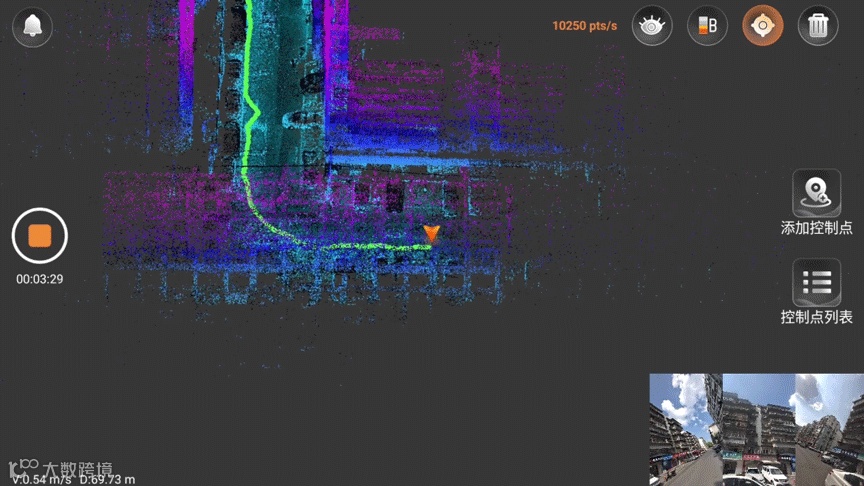 按照规划路线行进,采集过程中需要保证全程将RS30正对着建筑立面进行采集工作。采集过程中可通过平板实时查看扫描情况。