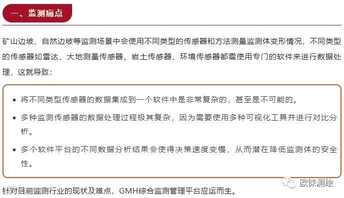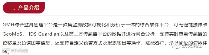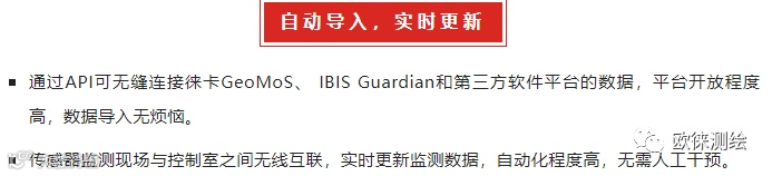 GMH综合监测管理平台是一款能够整合所有监测传感器的综合可视化平台,并可无缝链接徕卡和IDS监测传感器数据,在单个控制面板中展示所有监测信息。通过融合分析多元数据提高数据可靠性,此外先进的报表分析工具。简洁直观,操作易上手,功能全面,可扩展性强,只为向您提供优质的监测解决方案。