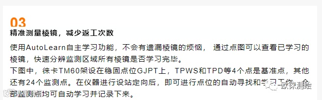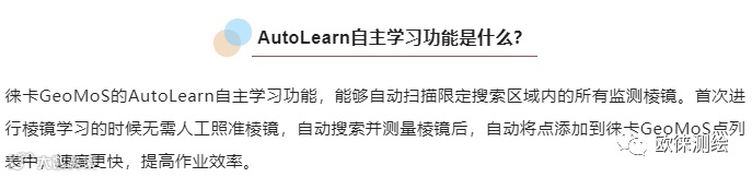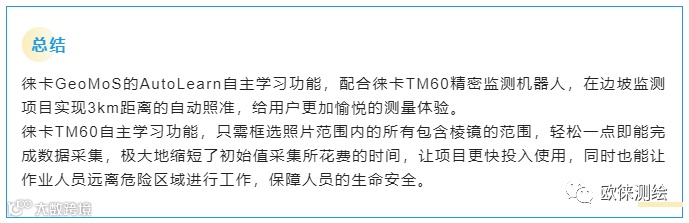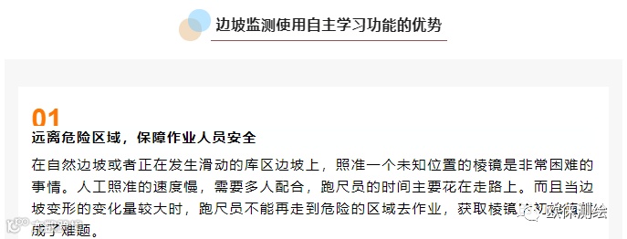 徕卡GeoMoS 的AutoLearn自主学习功能,实现单人自动找点,告别难以攀爬的边坡、下雨路面泥泞湿滑、山体正在滑坡等等场景,远离各种危险!