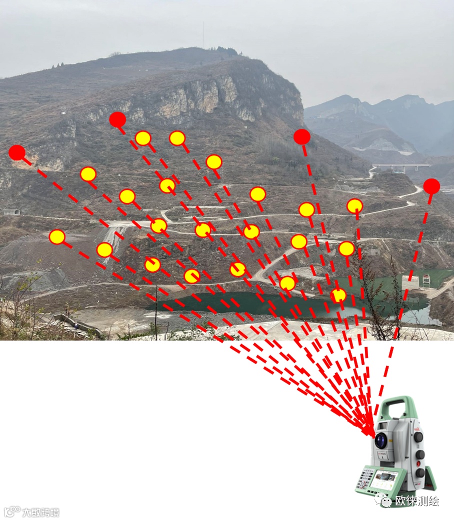 欧徕测绘边坡监测项目的特点是监测距离长、点位多,有时在危险区域布置的监测点,点位数量多而且密度大。通常我们对监测点进行初始值设置时,需要人工对每个棱镜点依次照准测量。在有大量监测点的情况下,花费时间长,也容易出错,有时找不到对应监测点,还需要安排人到棱镜前去指挥瞄准。在这种情况下,使用徕卡GeoMoS的AutoLearn自主学习功能,能够轻松解决这样的烦恼。
