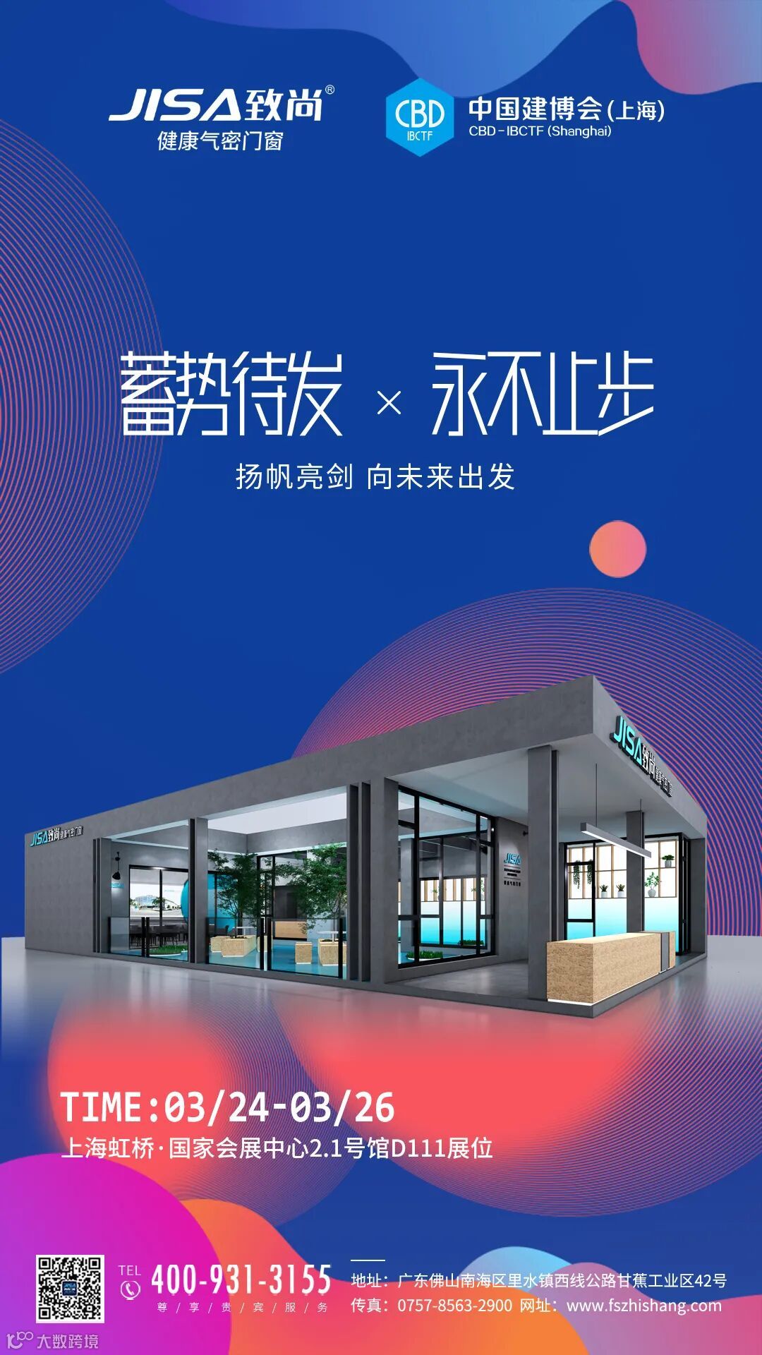 3月24日-26日,上海虹桥·国家会展中心2.1号馆D111展位,致尚门窗已整装待发,必将领航上海建博会,期待您的光临,共同聚焦未来。