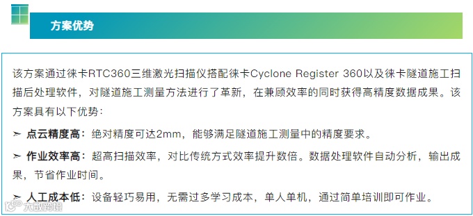 传统测量手段虽能够达到较高的精度,但测量效率太低,若土建施工进度滞后,势必会压缩往后每一个环节的施工期限,进而造成仓促抢工,不仅工程质量无法得到保障,而且还会使得返工率及整改时间增加,产生不必要的成本支出。为解决上述问题,该项目采用了徕卡RTC360三维激光扫描解决方案。
