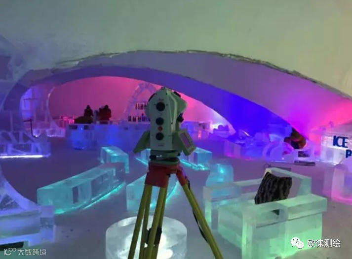 单站设置扫描方式采用全景扫描,水平间隔8公分,竖直间隔5公分,斜距设置为10米,扫描时间在15分钟左右,冰旅馆为三站,冰酒吧为四站,扫描及测量在两个小时即完成。