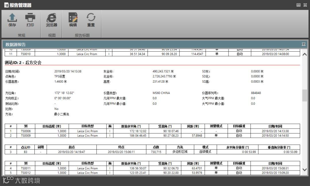 将徕卡MS60扫描成果导入Infinity,能够得到后方交会的设站报告。