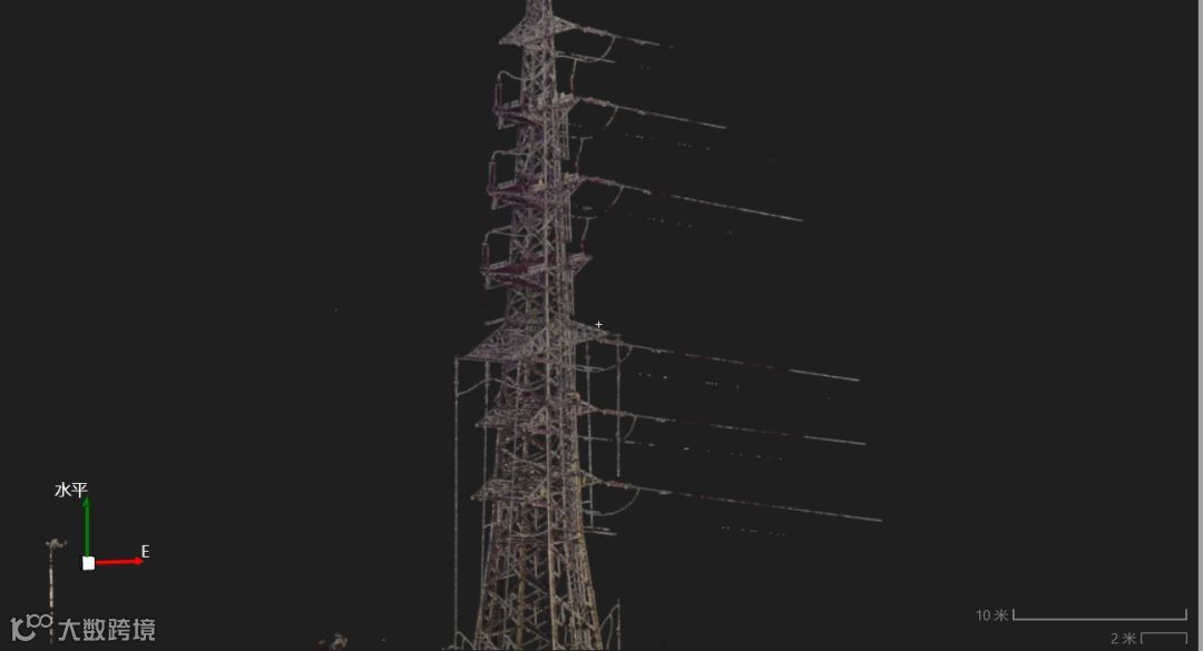 对铁塔点云进行三维浏览,铁塔横担及导线等细节部分点云也十分丰富。