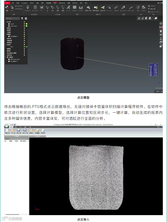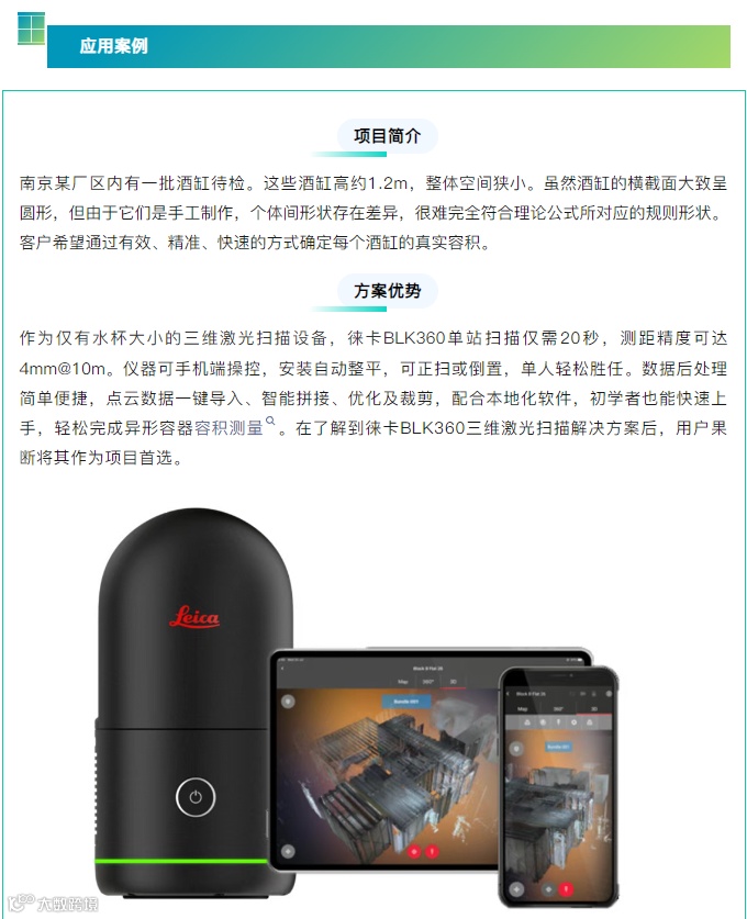 随着测量技术的不断发展,三维激光扫描仪开始普遍应用,这为异形容器的测量带来了更佳的解决方案。针对小开口、体积不大的罐子,传统仪器难以入内扫描,而徕卡BLK360三维激光扫描仪则凭借小巧灵活的设计,在该类项目中有着优异的表现。