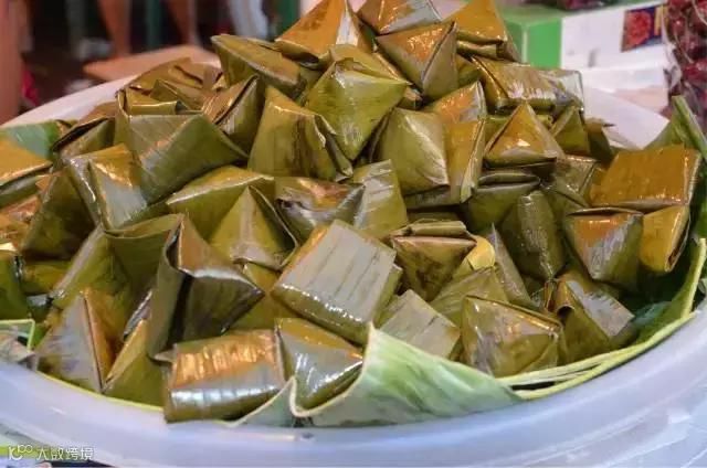 泰国把端午节又叫做“拜芭掌节”,他们的粽子只有鸡蛋大小,因为是用绿色粽叶包裹,所以蒸熟后呈淡绿色,味道十分清香。