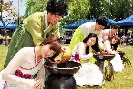 韩国也有过端午节的习俗。他们的风俗习惯是用菖蒲水洗头求吉利,喝菖蒲水以辟邪。在端午节当天摆上散发着艾草和糯米香味的艾子糕,用艾饼、松皮饼祭祖先。人们还会穿着传统服装参加祭祀、观看荡秋千和摔跤比赛。韩国人过端午并不吃粽子,也没有划龙舟的比赛。