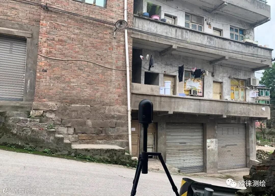 徕卡BLK360在这种道路高低不平,建筑物密集环境立面测量上有其独有优势: