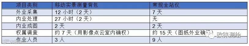 徕卡移动实景测量背包作业效率与常规全站仪作业效率对比如下表: