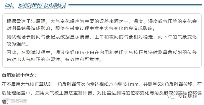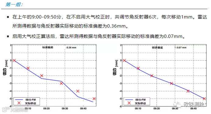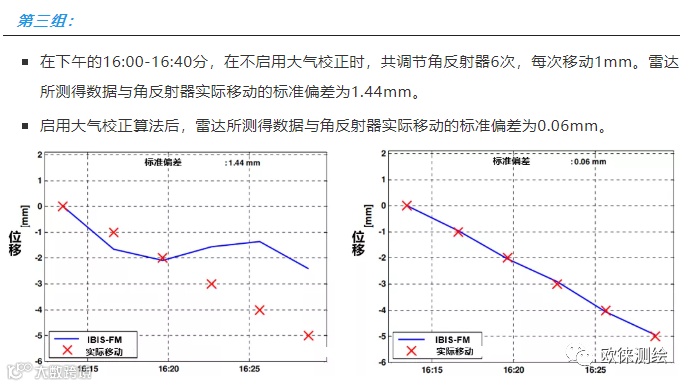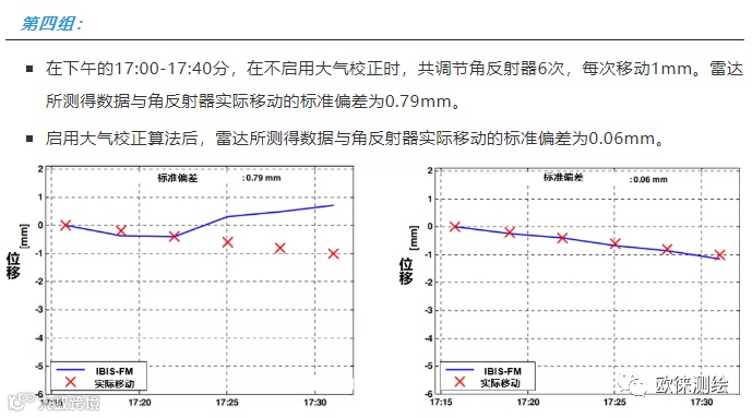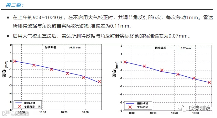 通过上午气象稳定及下午气象变化强烈的场景下,IBIS-FM的大气校正后的结果能够达到与实际位移低于0.1mm的标准偏差。