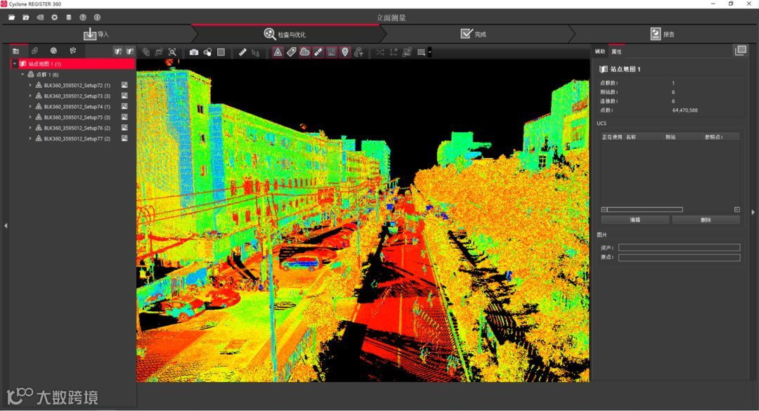 导入结束后,全部点云同时完成自动拼接,检查拼接精度。