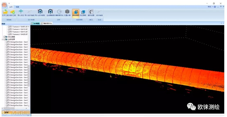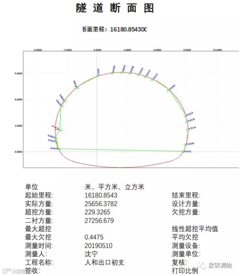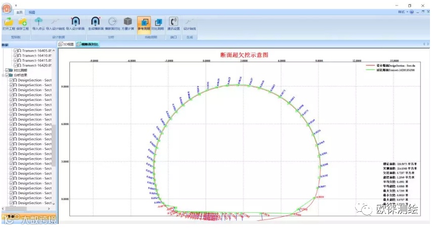 一次作业的数据就可以实现超欠挖断面分析、方量计算、衬砌分析、侵限分析等多中功能成果: