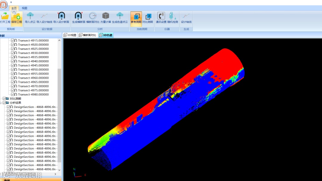 3.3色谱图:根据点云超欠挖分布生成色谱图,直观反映整体的超欠挖分布。同时可以连接放样机器人,现场放样,指导施工人员作业。