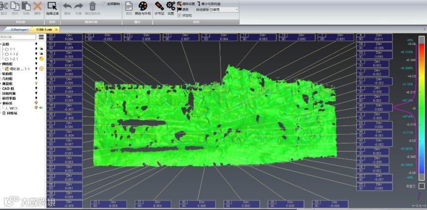 然后使用3DReshaper软件对两期数据进行对比分析。对比分析结果如下: