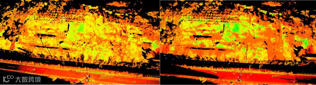 边坡两期点云位移偏差色谱图
